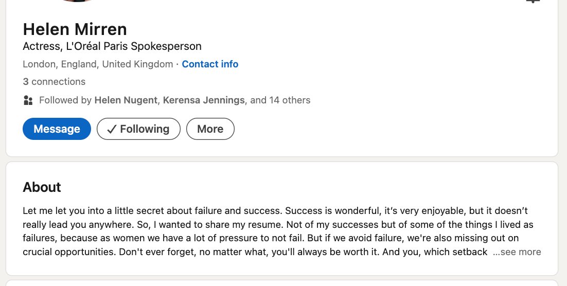 As of this week I’ll starting thinking of Helen Mirren and the #worthitresume. A campaign celebrating the failures we accumulate on the path to success.