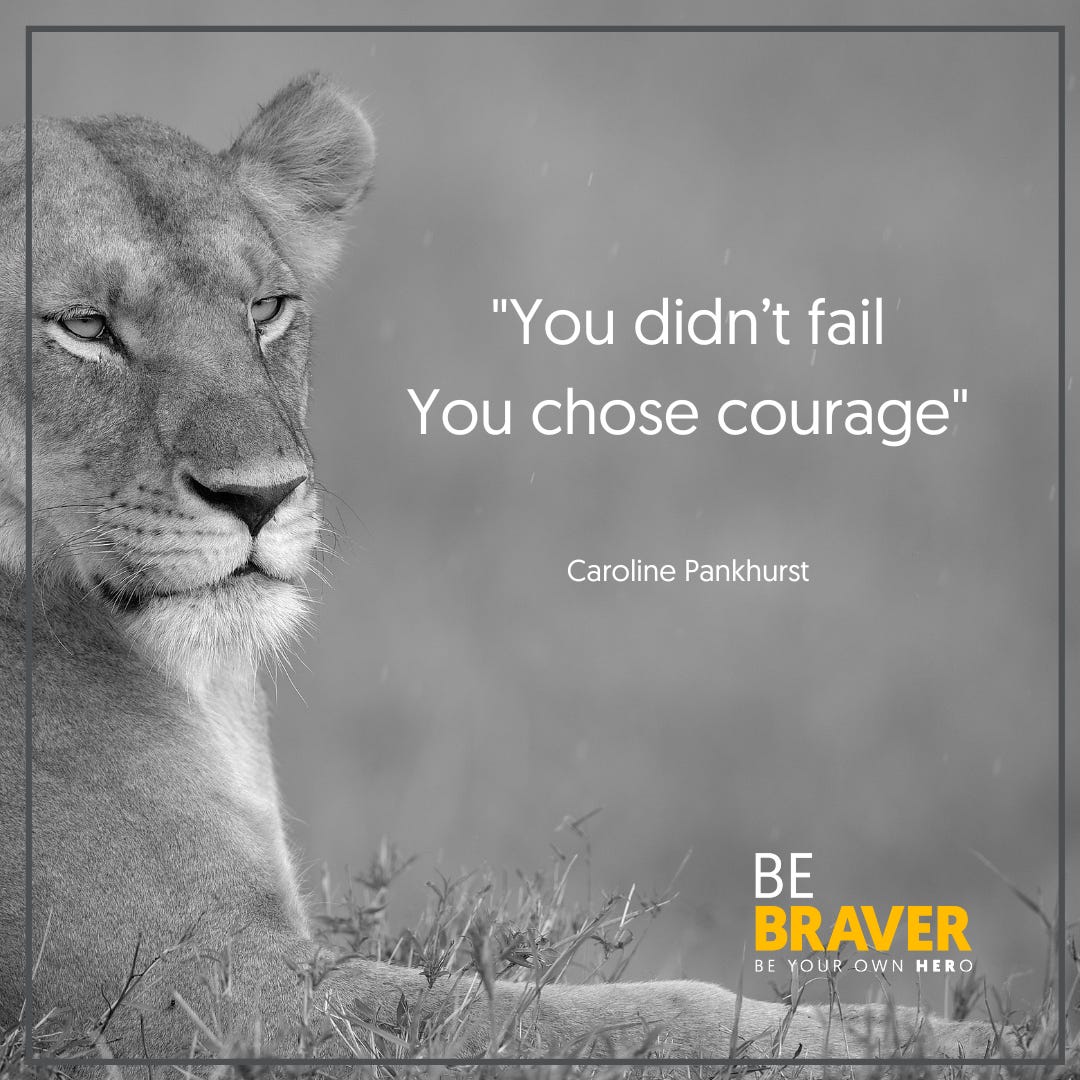 This isn’t simply me trying to put a positive white wash on undesirable outcomes however, so I want to expand a little bit in here on what I suggest to my Clients when I hear then talking about their failures we reframe it to ‘I chose courage’.