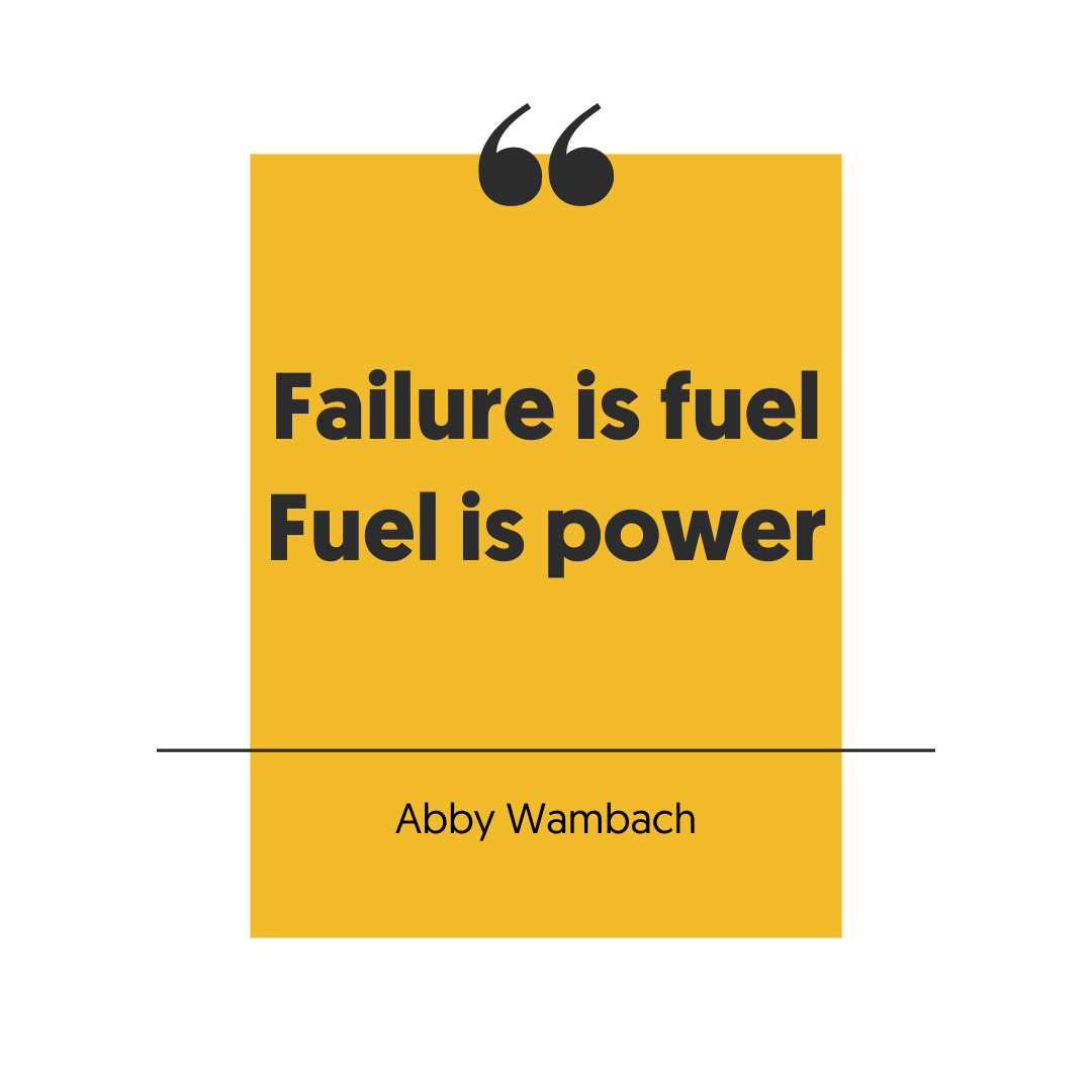 “Make failure your fuel. Non athletes don't know what to do with the gift of failure and waste it. Failure is not something to be ashamed of, it’s something to be powered by. It’s the highest octane fuel your life can run on” Amy Wambach-Barnard
